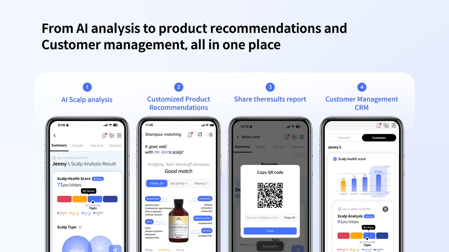 Explore our integrated service CRM. Consumers receive analysis reports by registering with the same phone number.